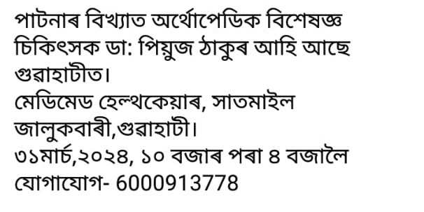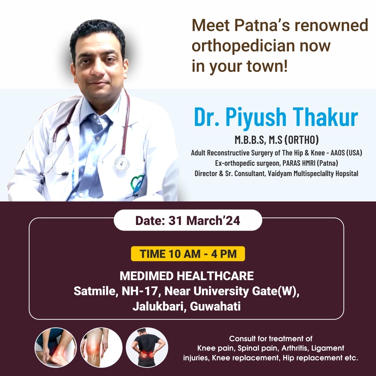 To book an appointment with Dr Piyush Thakur, Who is visiting guwahati on 31st March,2024 Click here